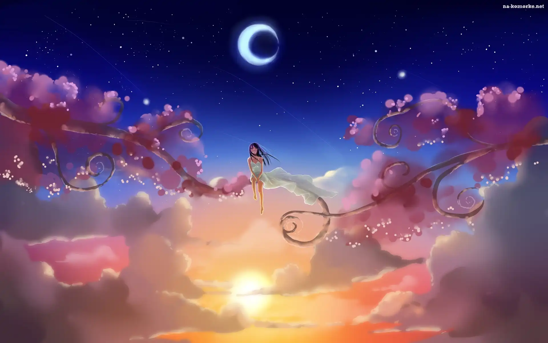 Gałęzie, Chibionpu, Dziewczyna, Księżyc, Chmury na Komórkę