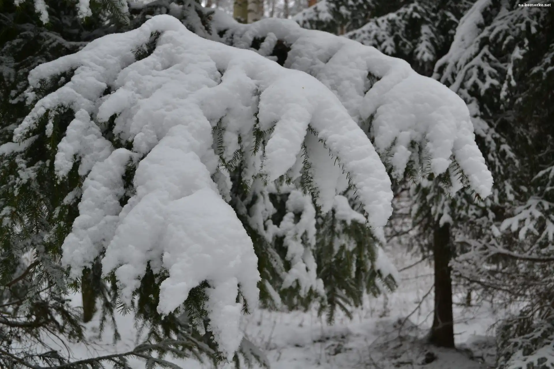 Ośnieżone, Gałęzie, Świerku na Komórkę