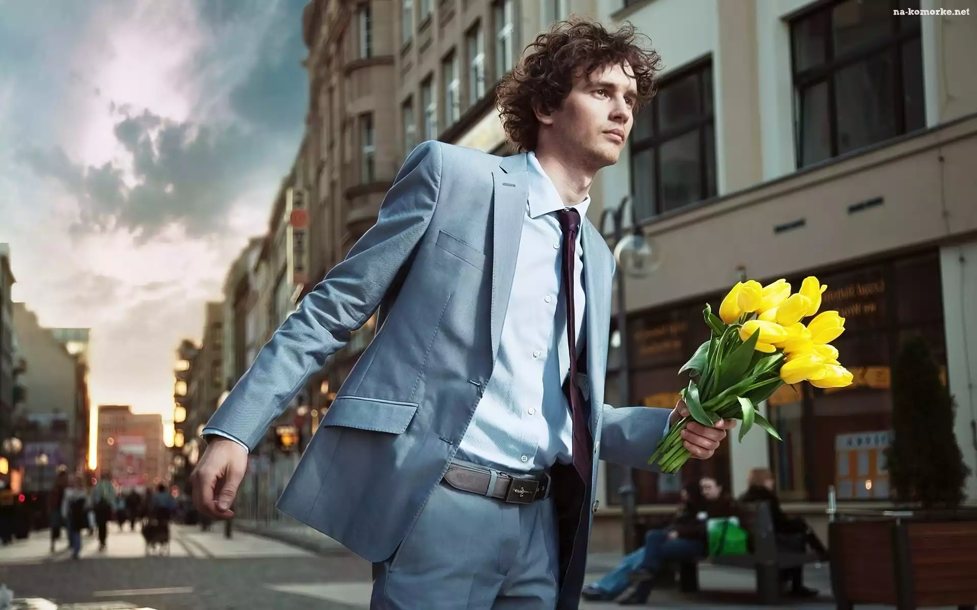 Garnitur, Ulica, Miasto, Tulipany, Mężczyzna, Żółte na Komórkę
