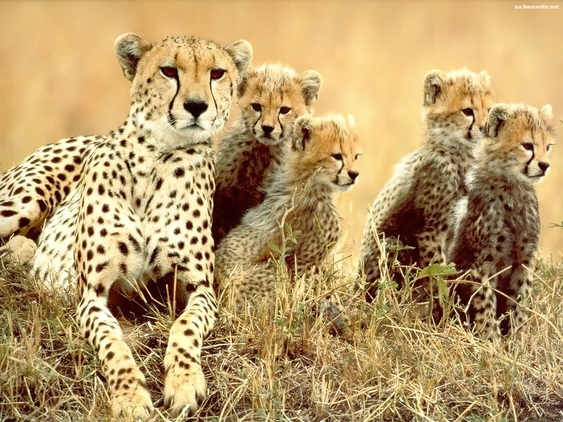 Gepardy, młode na Komórkę