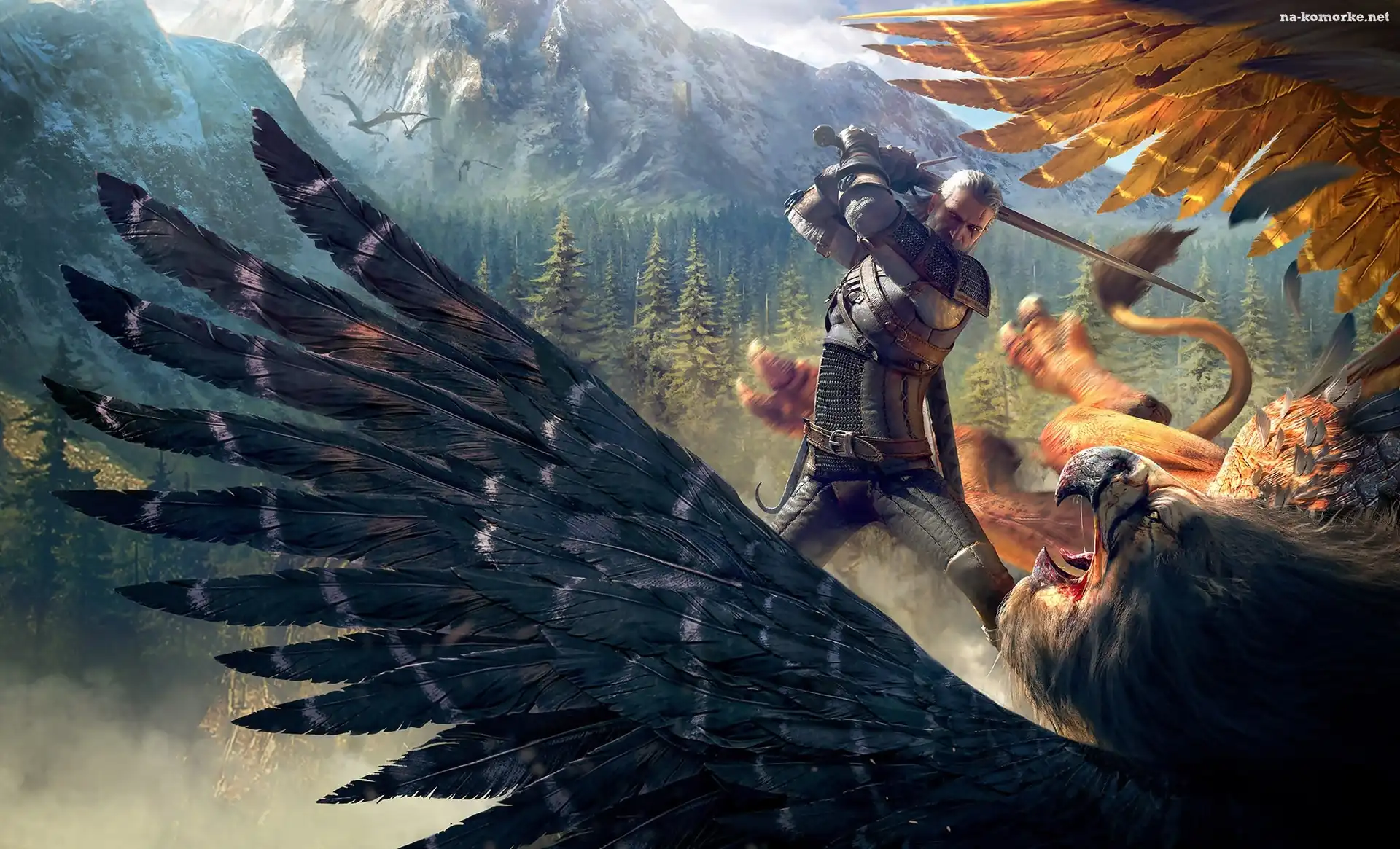 Geralt z Rivii, Wiedźmin 3 Dziki Gon, Gra, Walka, The Witcher 3 Wild Hunt, Ptak na Komórkę
