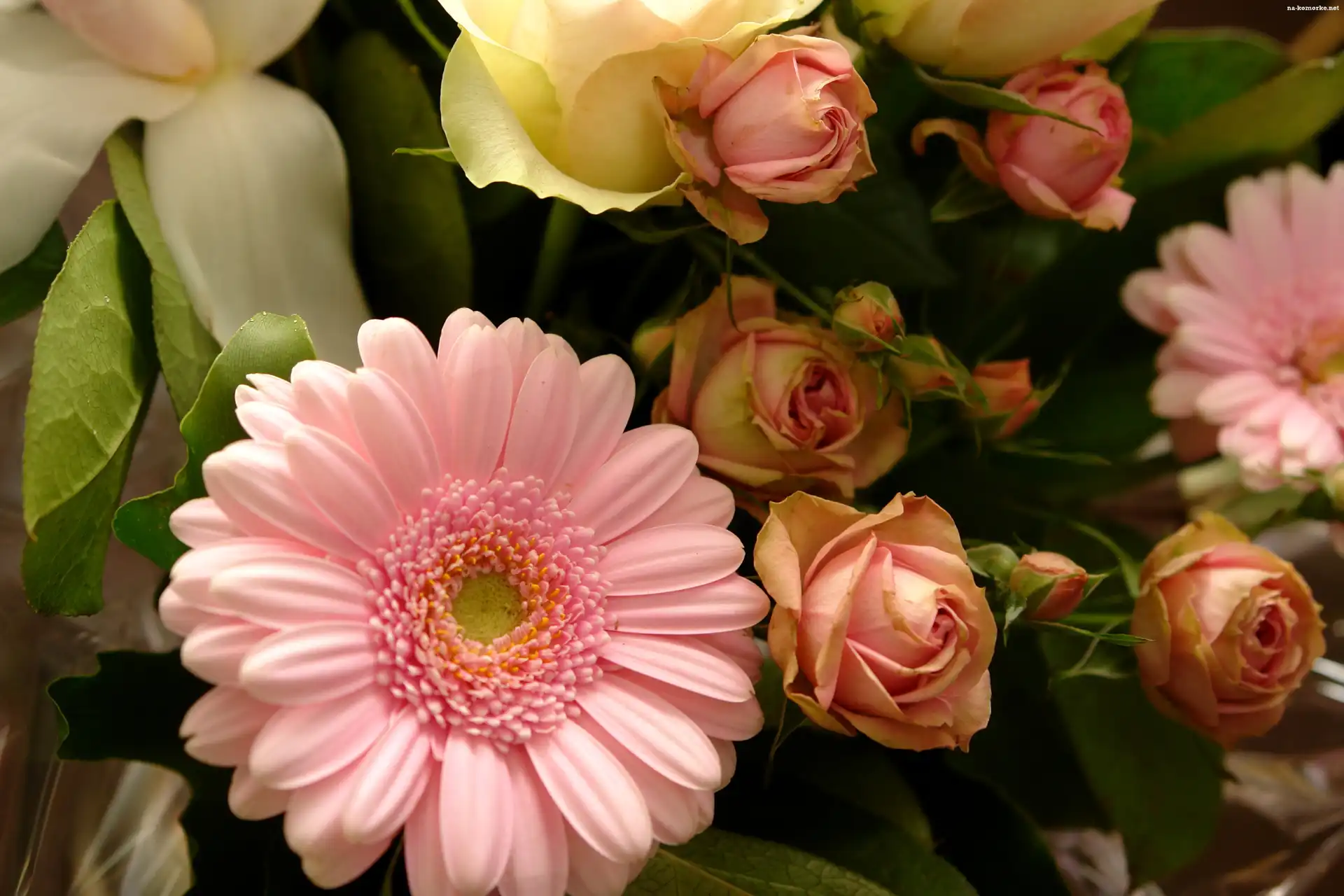 Gerbera, Liście, Róże, Pąki na Komórkę