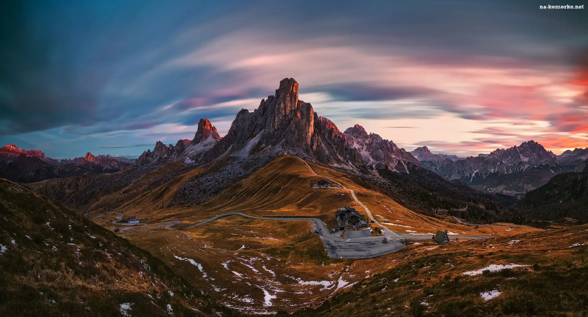 Włochy, Droga, Giau Pass, Chmury, Belluno, Góry, Góra Ra Gusela, Dolomity na Komórkę