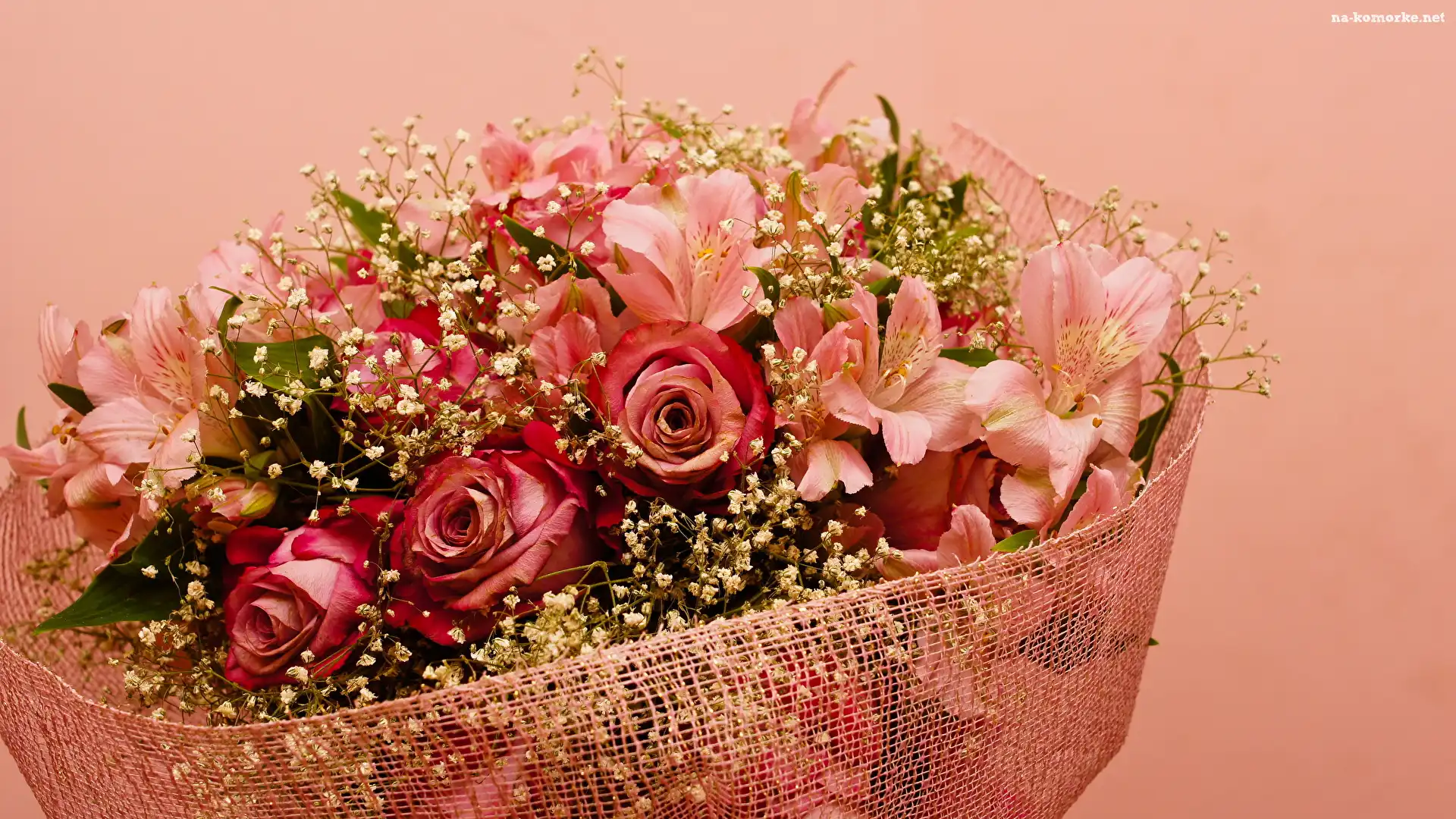 Gipsówka, Róże, Bukiet, Florystyczna, Alstremerie, Siatka na Komórkę