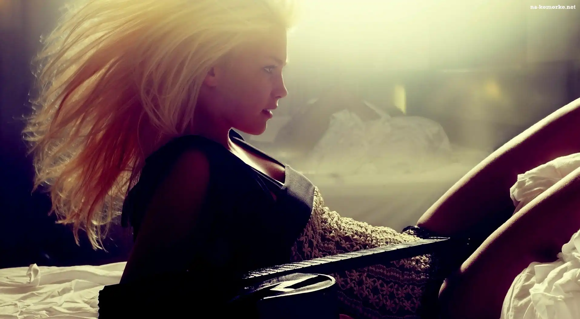 Gitara, Kobieta, Rozwiane, Włosy, Instrument na Komórkę