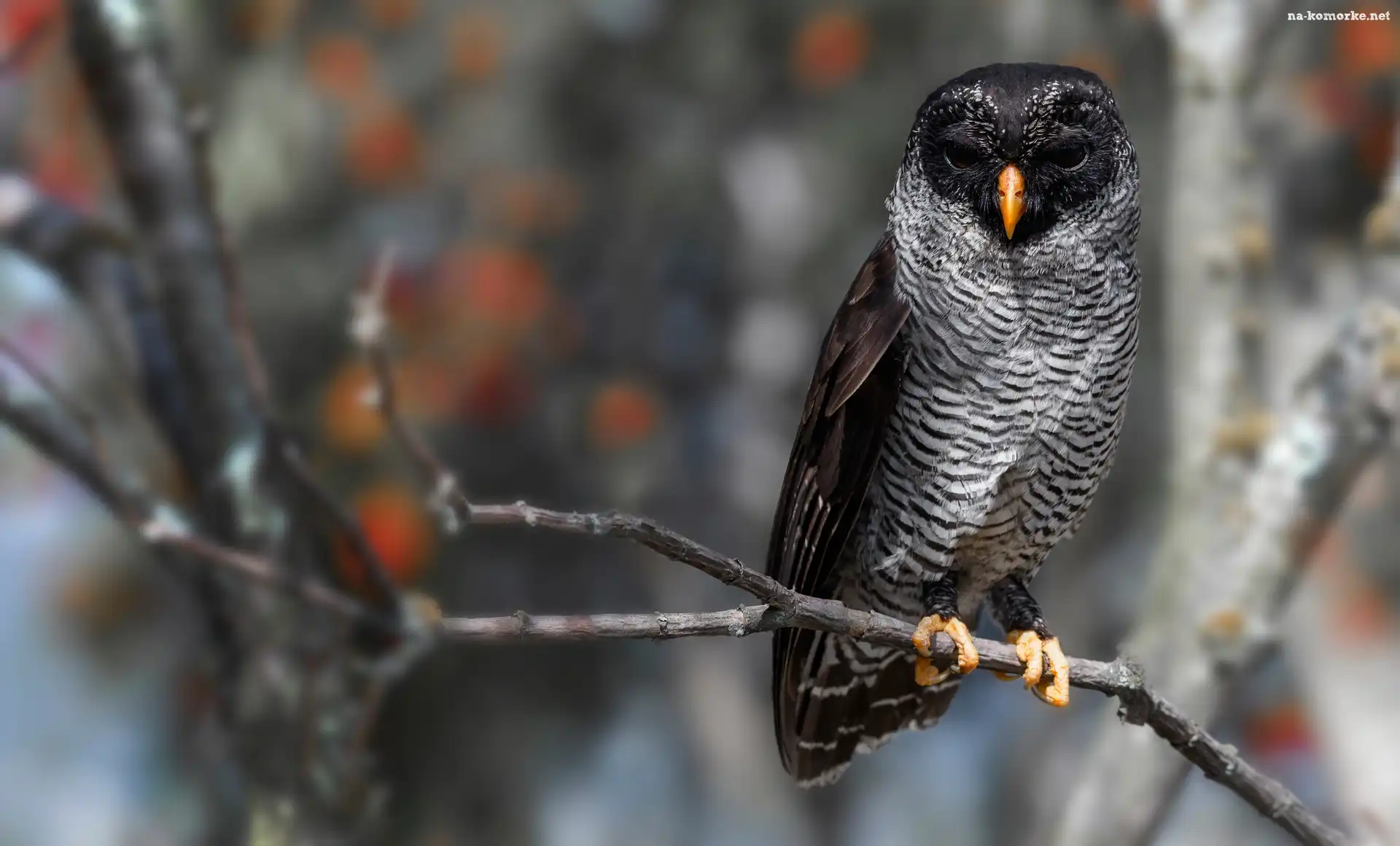 Ptak, Głowa, Gałązka, Sowa, Ciccaba, Dżunglarka czarnolica, Czarna na Komórkę