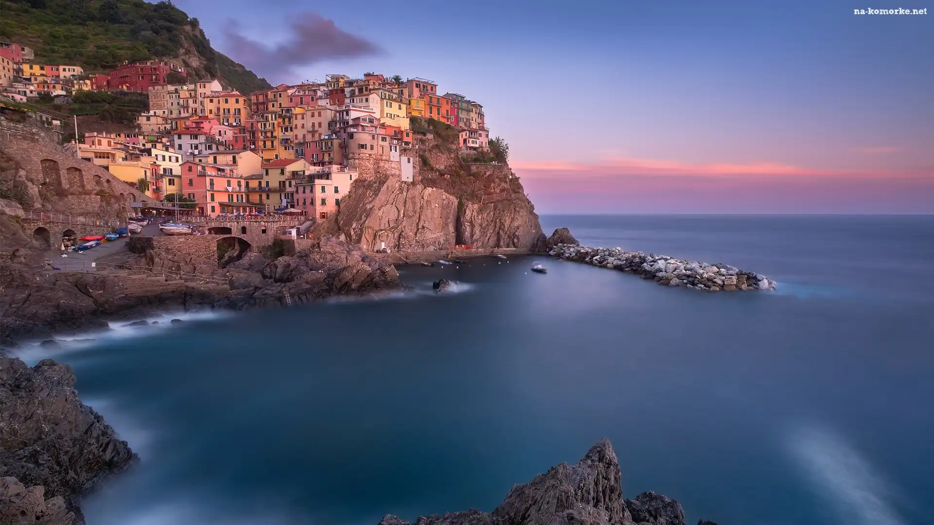 Włochy, Zatoka, Miejscowość Manarola, Skały, Gmina Riomaggiore, Morze Liguryjskie, Cinque Terre, Domy na Komórkę |