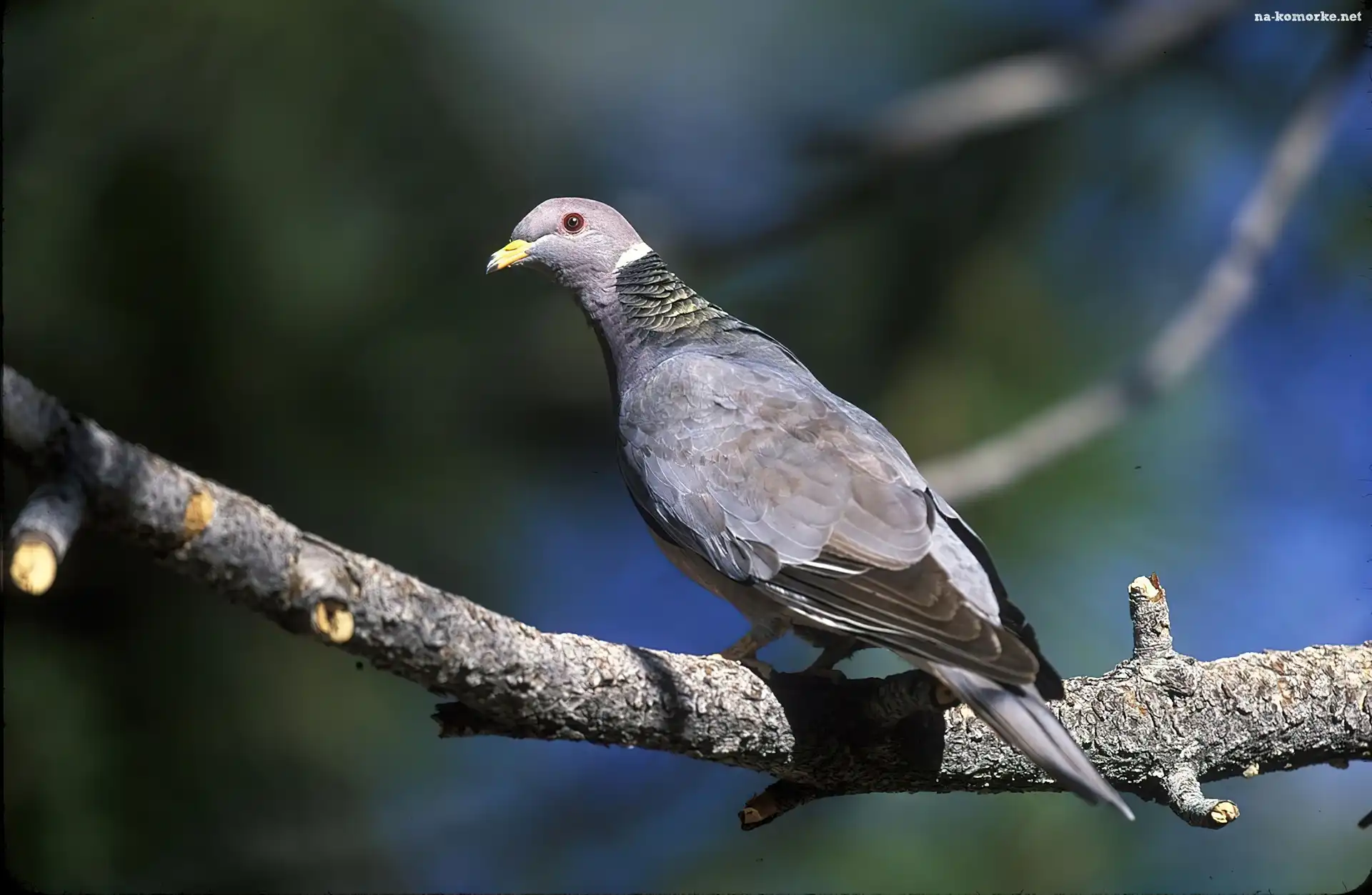 Gołąb Pręgosterny, Gałąź, Czerwone, Oko na Komórkę