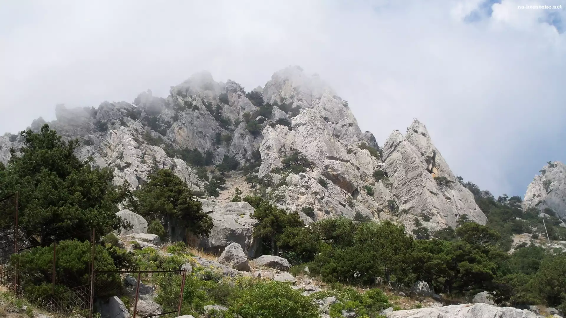 Gór, Chmury, Skały, Drzewa na Komórkę