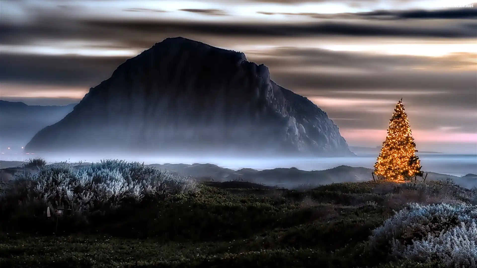 Góra, Chmury, Świecąca, Choinka na Komórkę