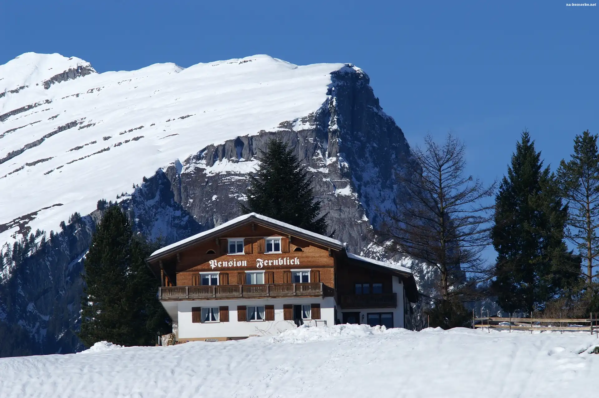 Śnieg, Zima, Pensjonat, Góra, Drzewa na Komórkę