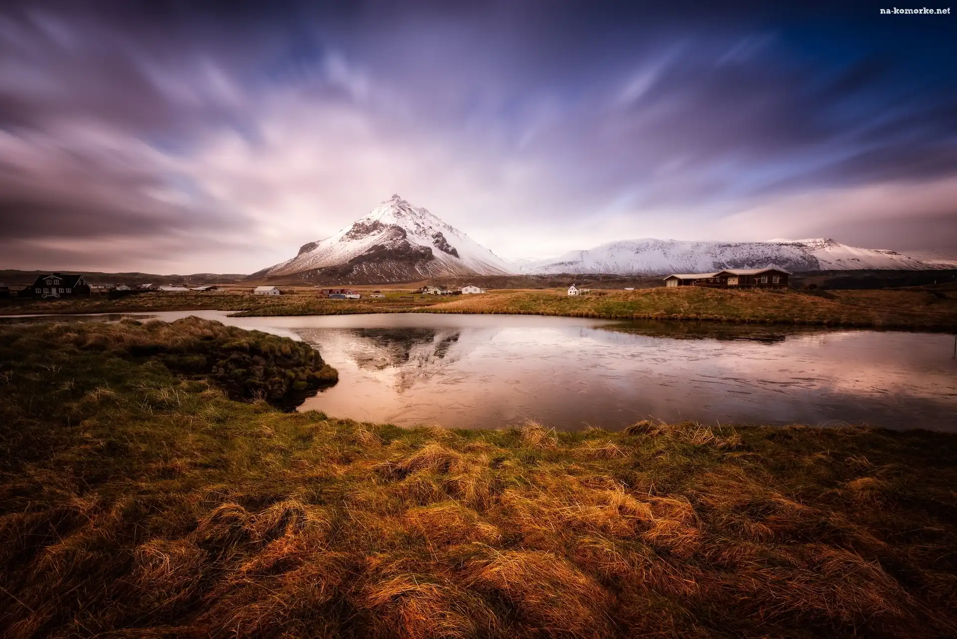 Góra, Trawy, Zima, Jezioro na Komórkę