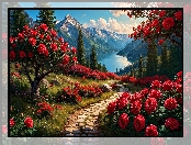 Róże, Góry, AI, Droga, Jezioro na Komórkę