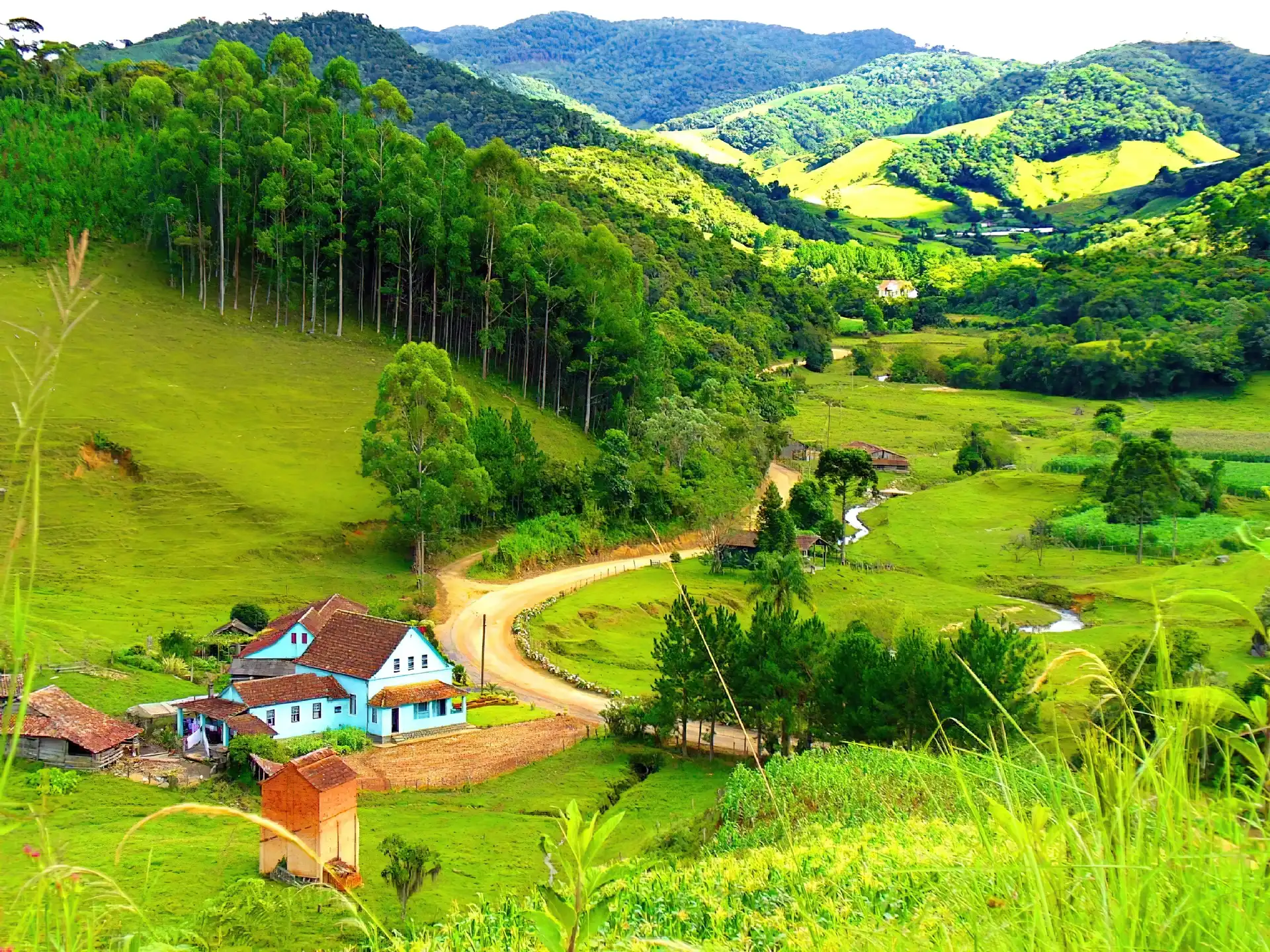 Góry, Droga, Łąka, Dom na Komórkę