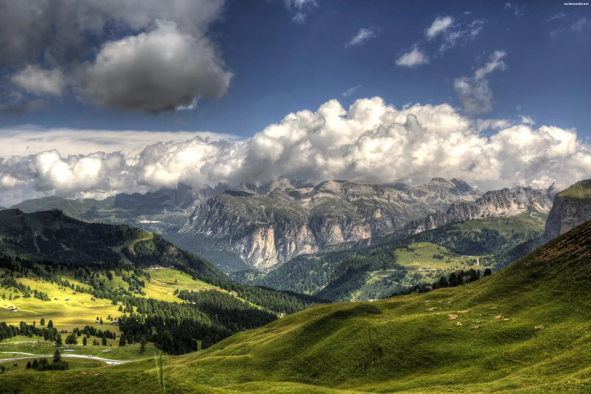 Góry, Łąki, Chmury, Lasy na Komórkę