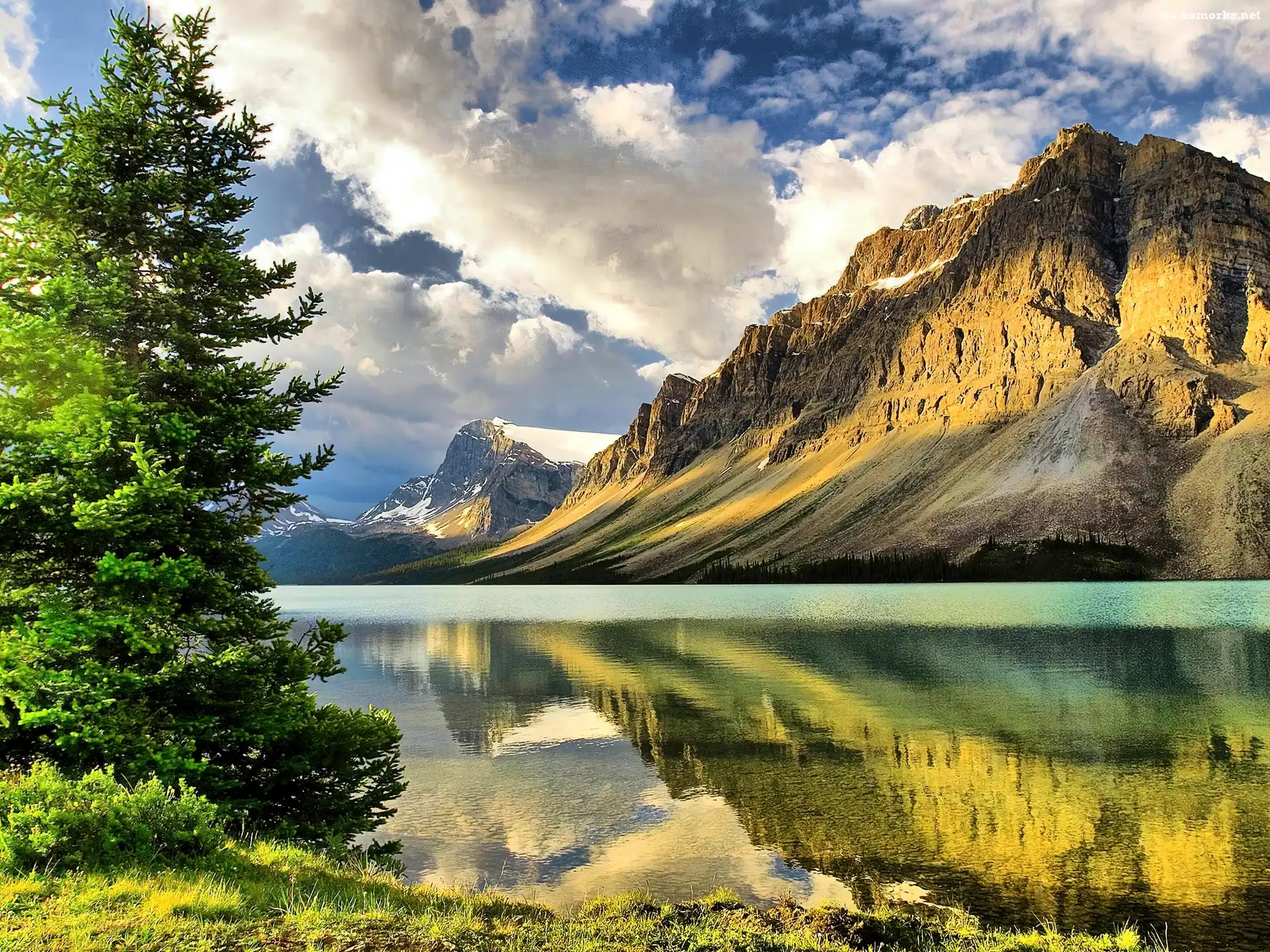 Góry, Choinka, Chmury, Jezioro na Komórkę