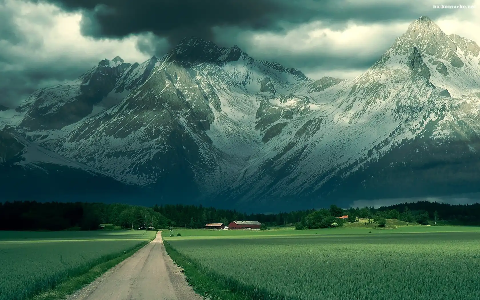 Góry, Droga, Chmury, Trawa na Komórkę