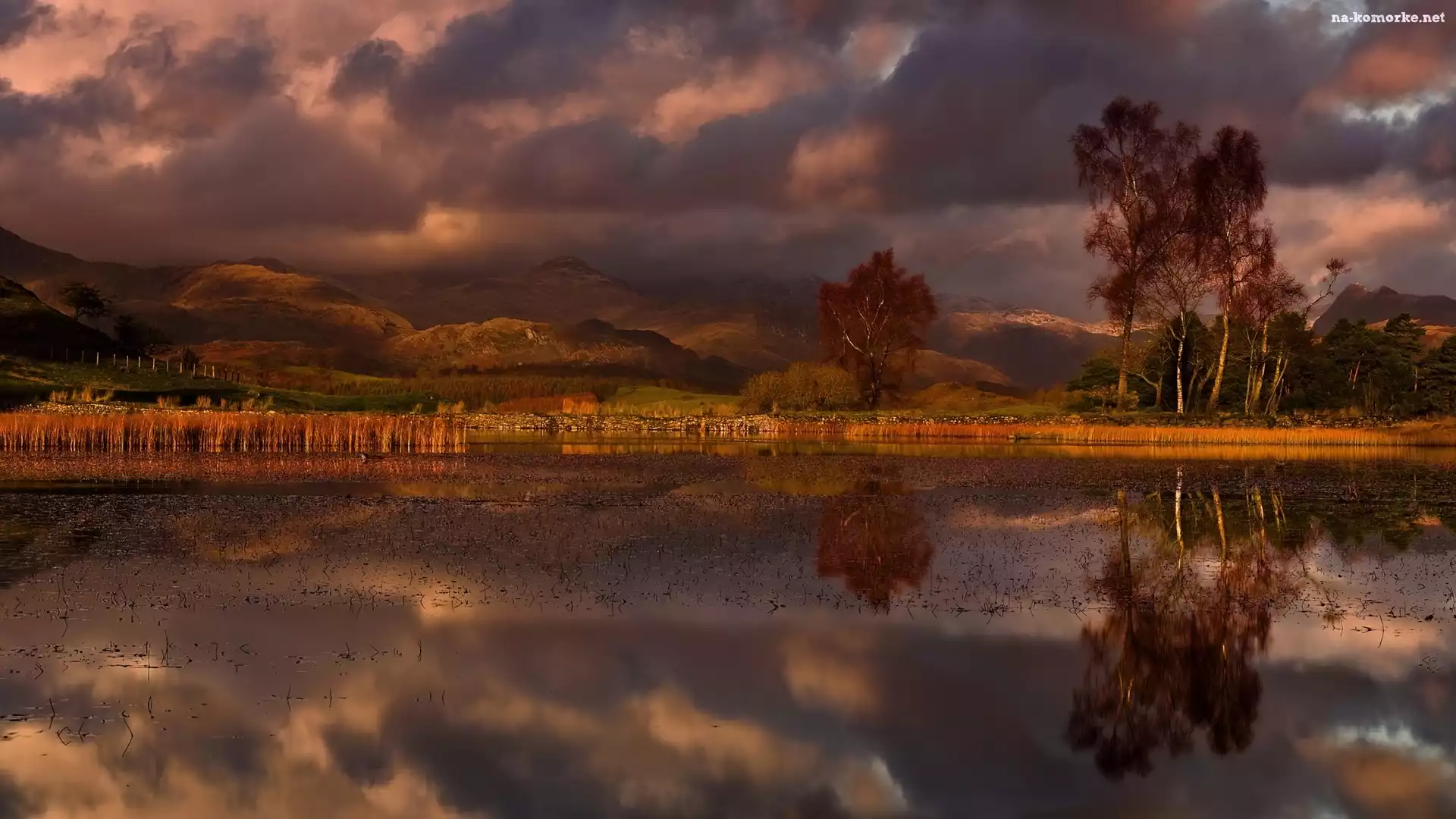 Góry, Drzewa, Chmury, Jezioro na Komórkę