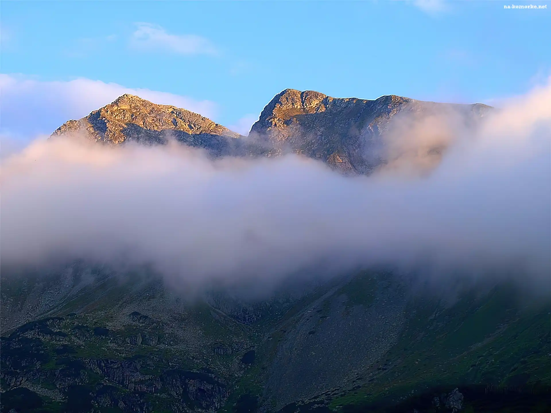 Góry, Niebo, Chmury, Mgła na Komórkę