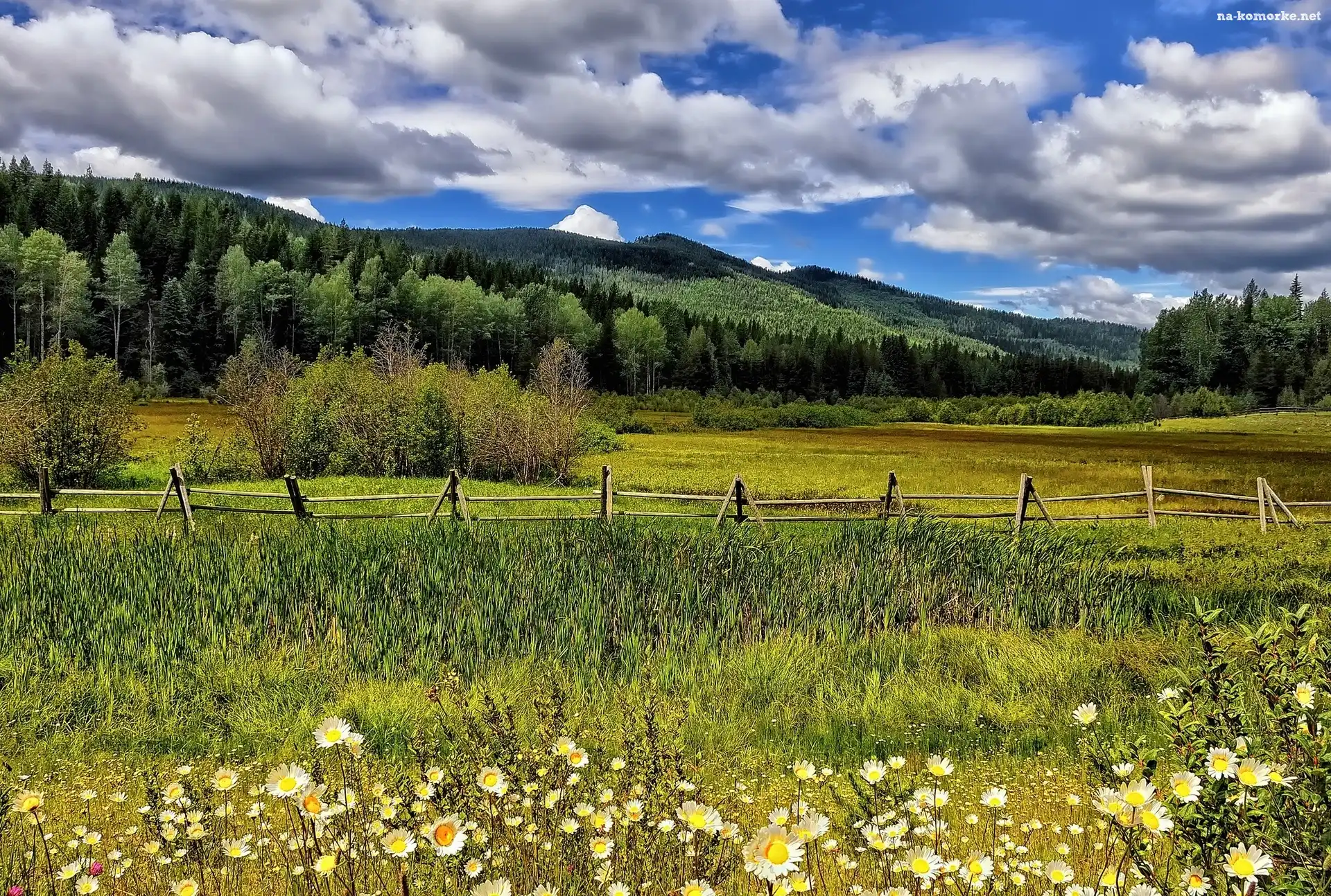 Góry, Ogrodzenie, Chmury, Łąka na Komórkę