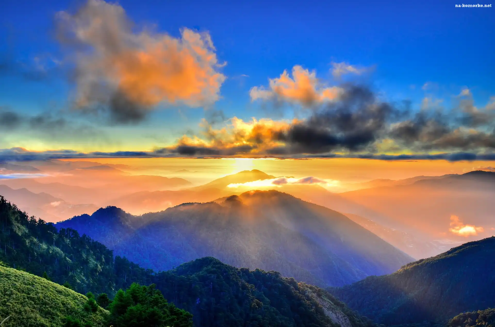 Góry, Słoneczne, Chmury, Promienie na Komórkę