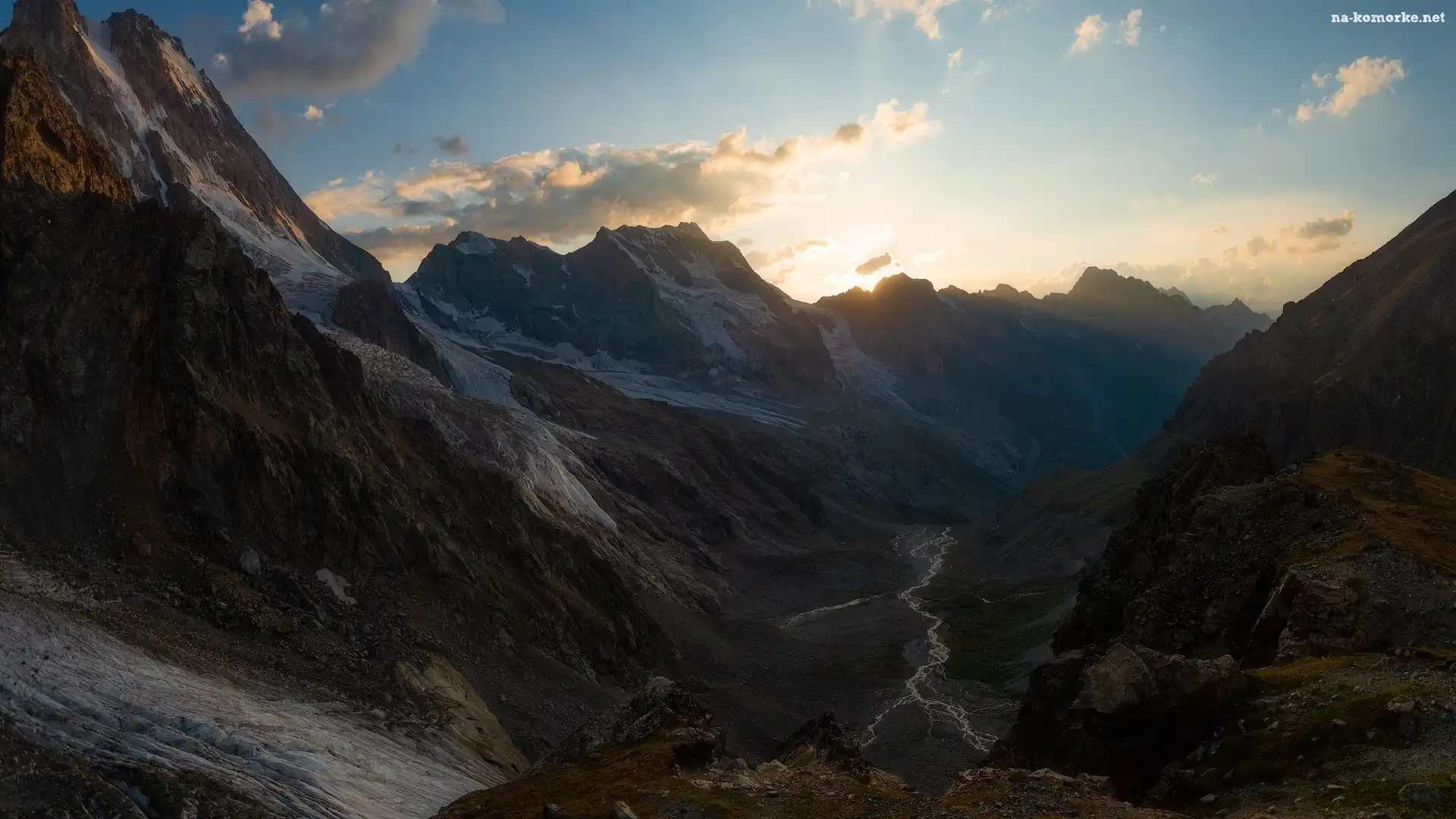 Góry, Chmury, Dolina, Rzeka na Komórkę