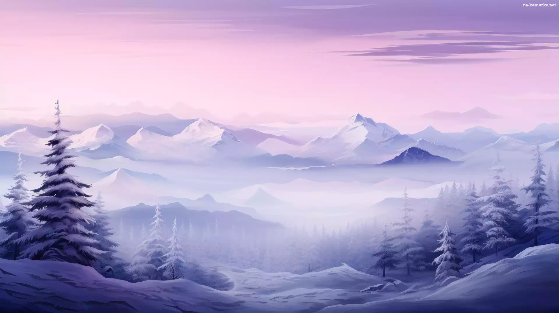 Zima, Góry, Drzewa, Mgła, 2D na Komórkę