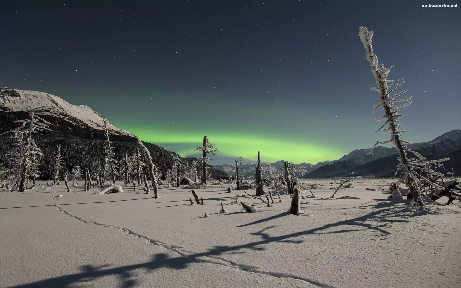 Góry, Gwiazdy, Drzewa, Śnieg na Komórkę