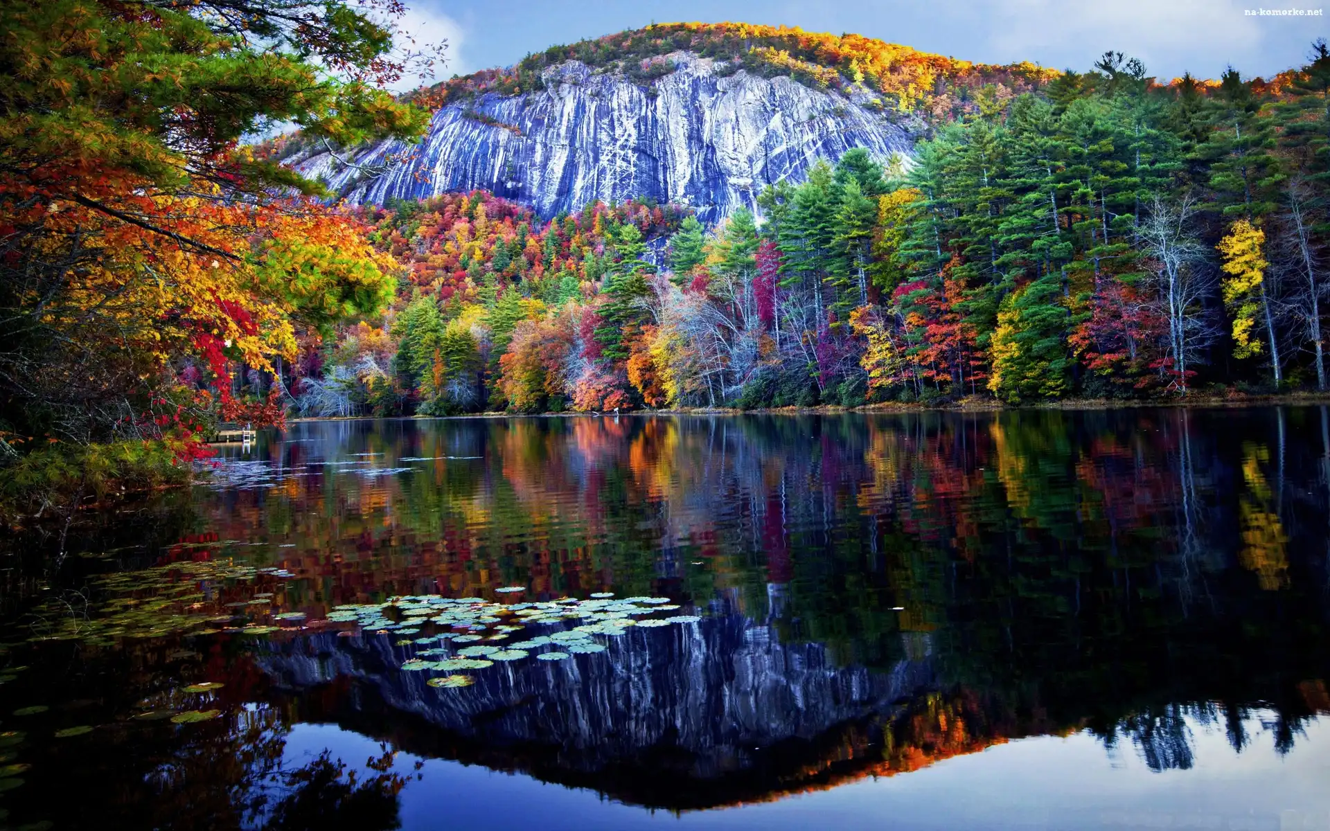 Góry, Jesień, Drzewa, Jezioro na Komórkę