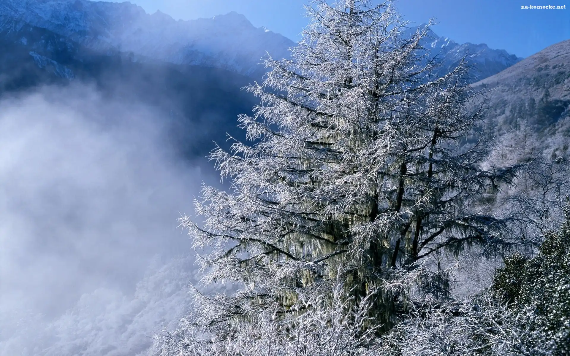 Góry, Zima, Drzewa, Chmury na Komórkę