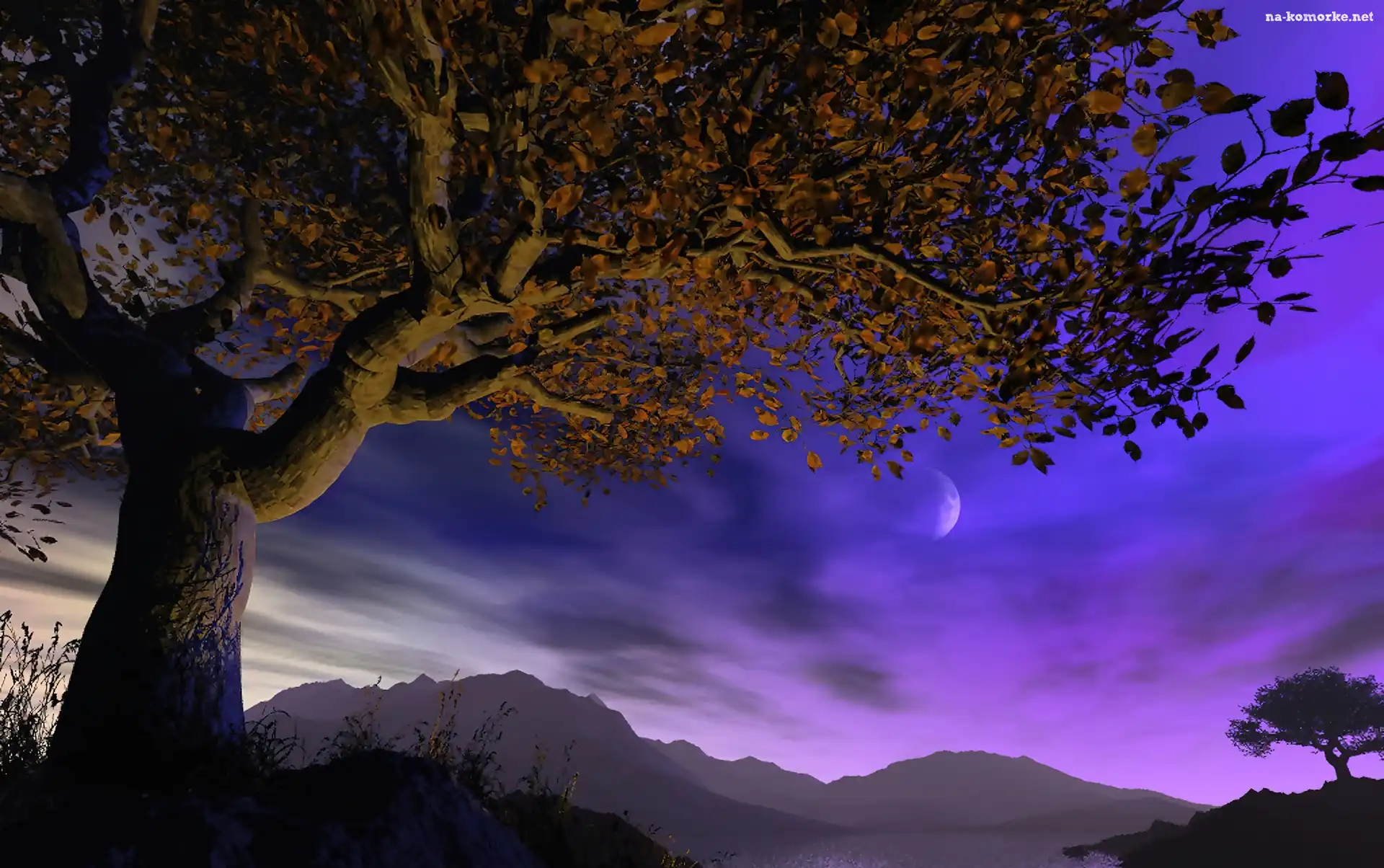 Góry, Księżyc, Drzewo, Niebo na Komórkę