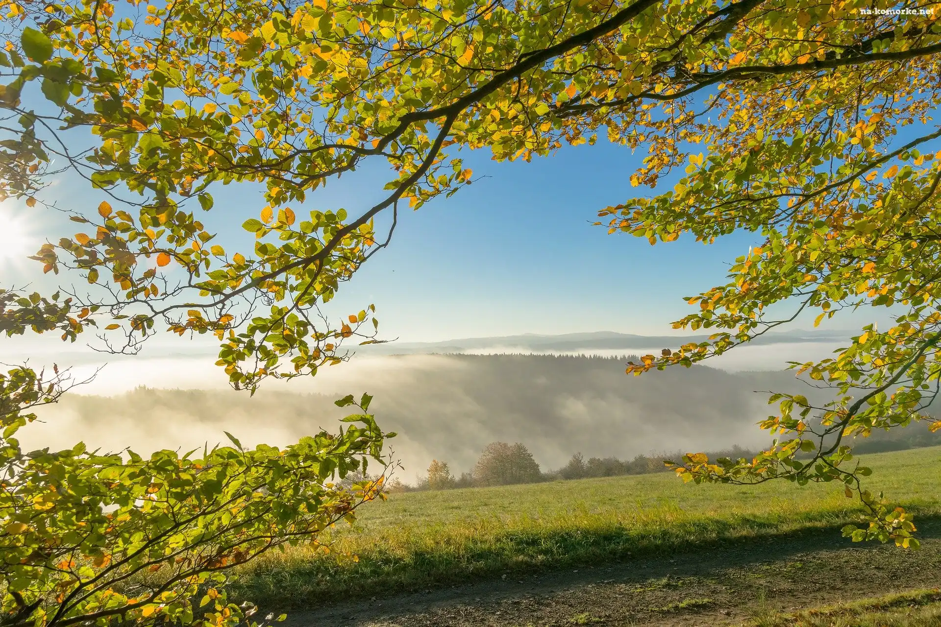 Góry, Mgła, Drzewa, Gałęzie, Łąka na Komórkę