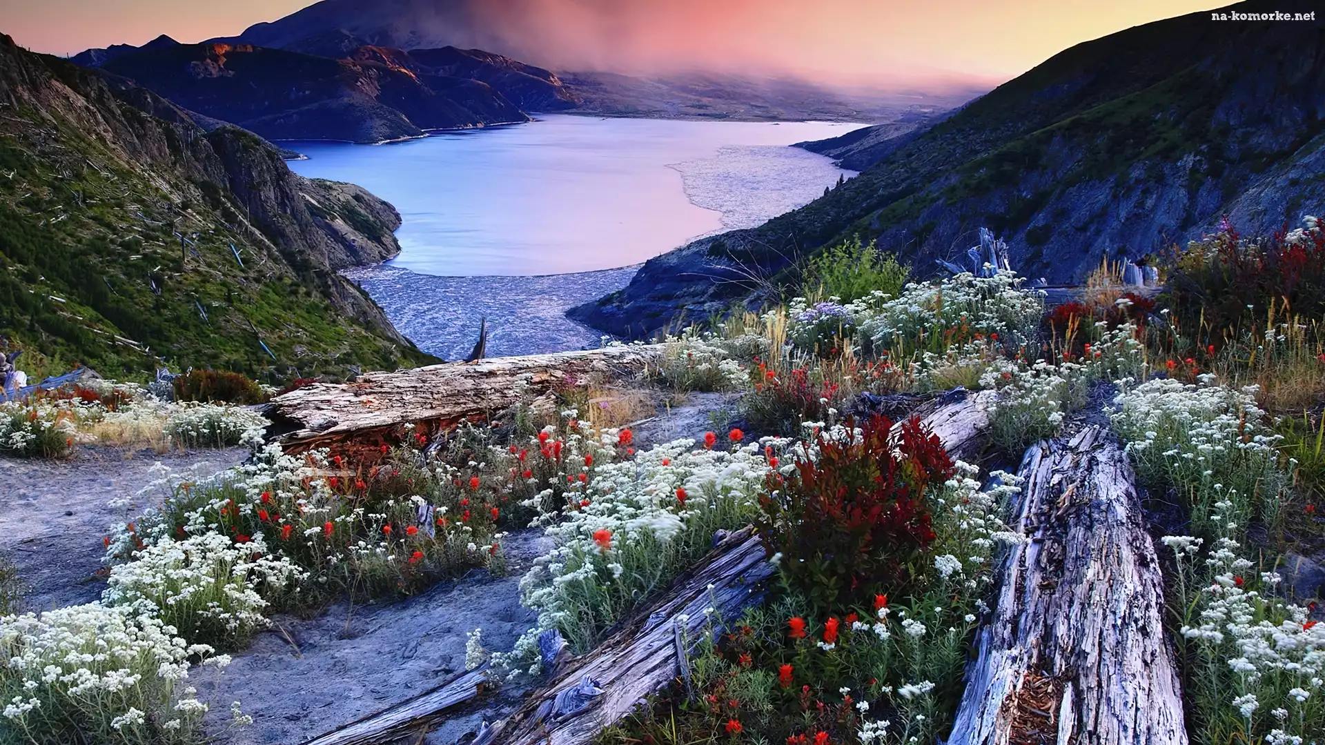 Góry, Kwiaty, Jezior, Kolorowe na Komórkę