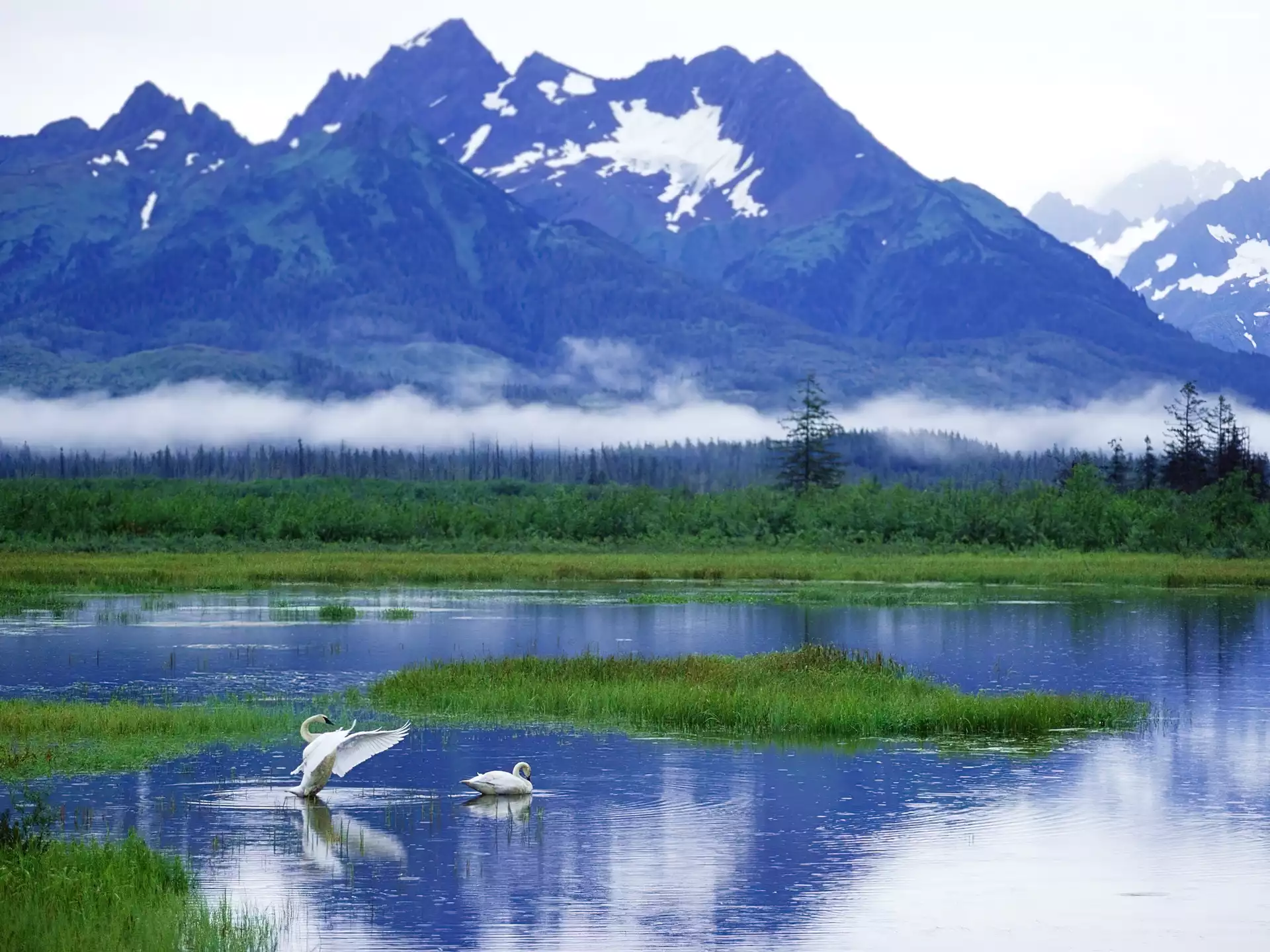 Góry, Alaska, Jezioro, Łabędzie na Komórkę