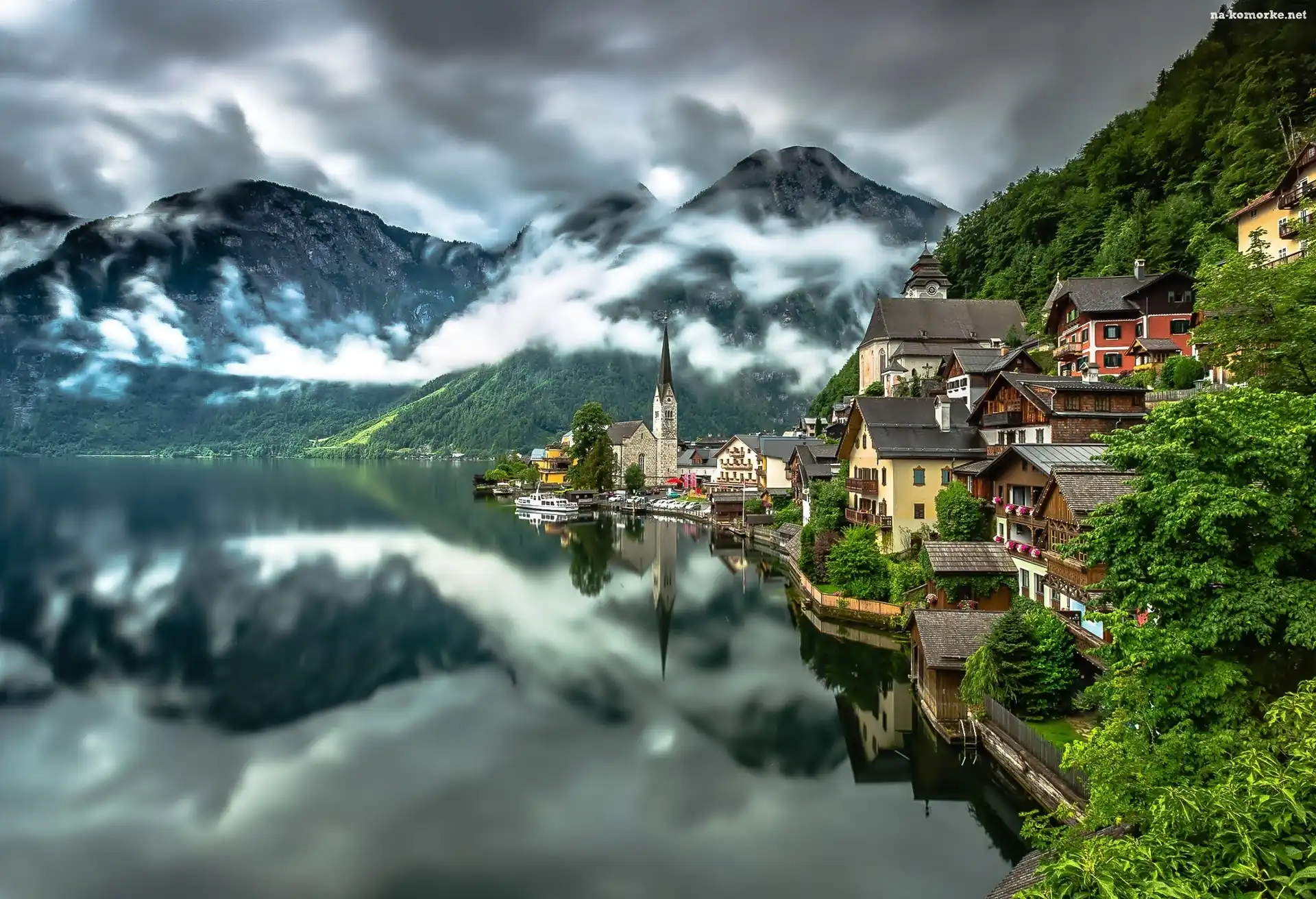 Góry, Austria, jezioro, Hallstatt na Komórkę
