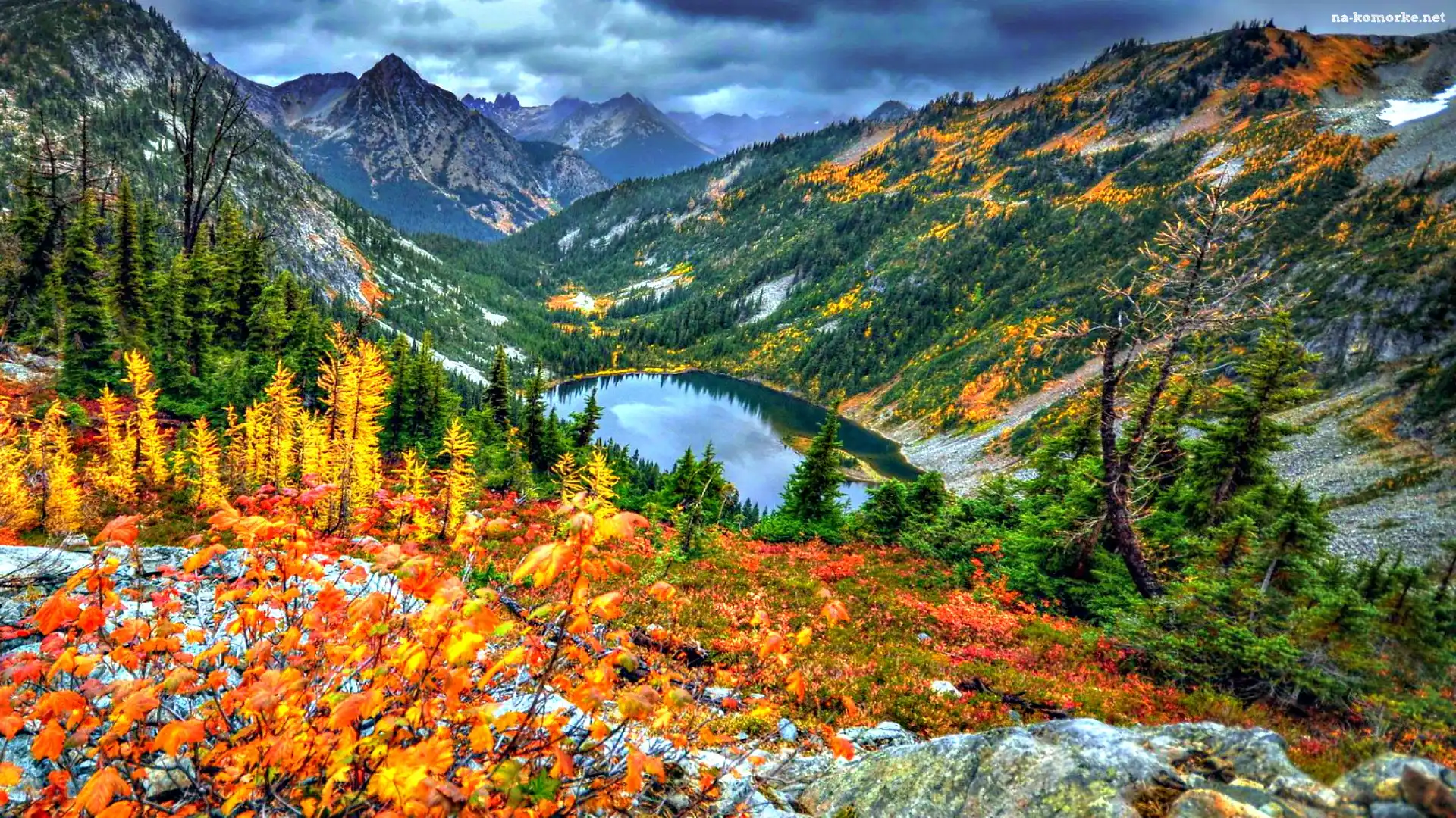 Góry, Chmury, Jezioro, Drzewa na Komórkę