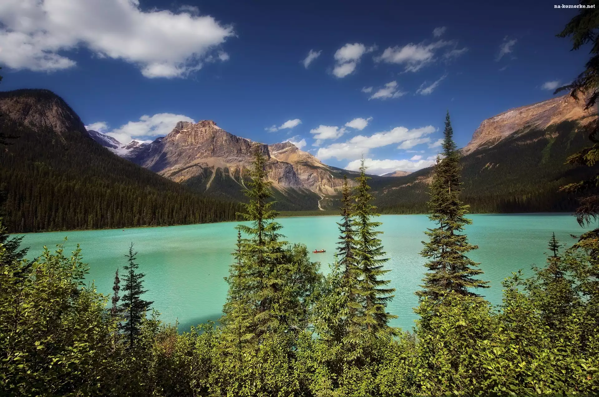 Góry, Chmury, Jezioro, Drzewa na Komórkę