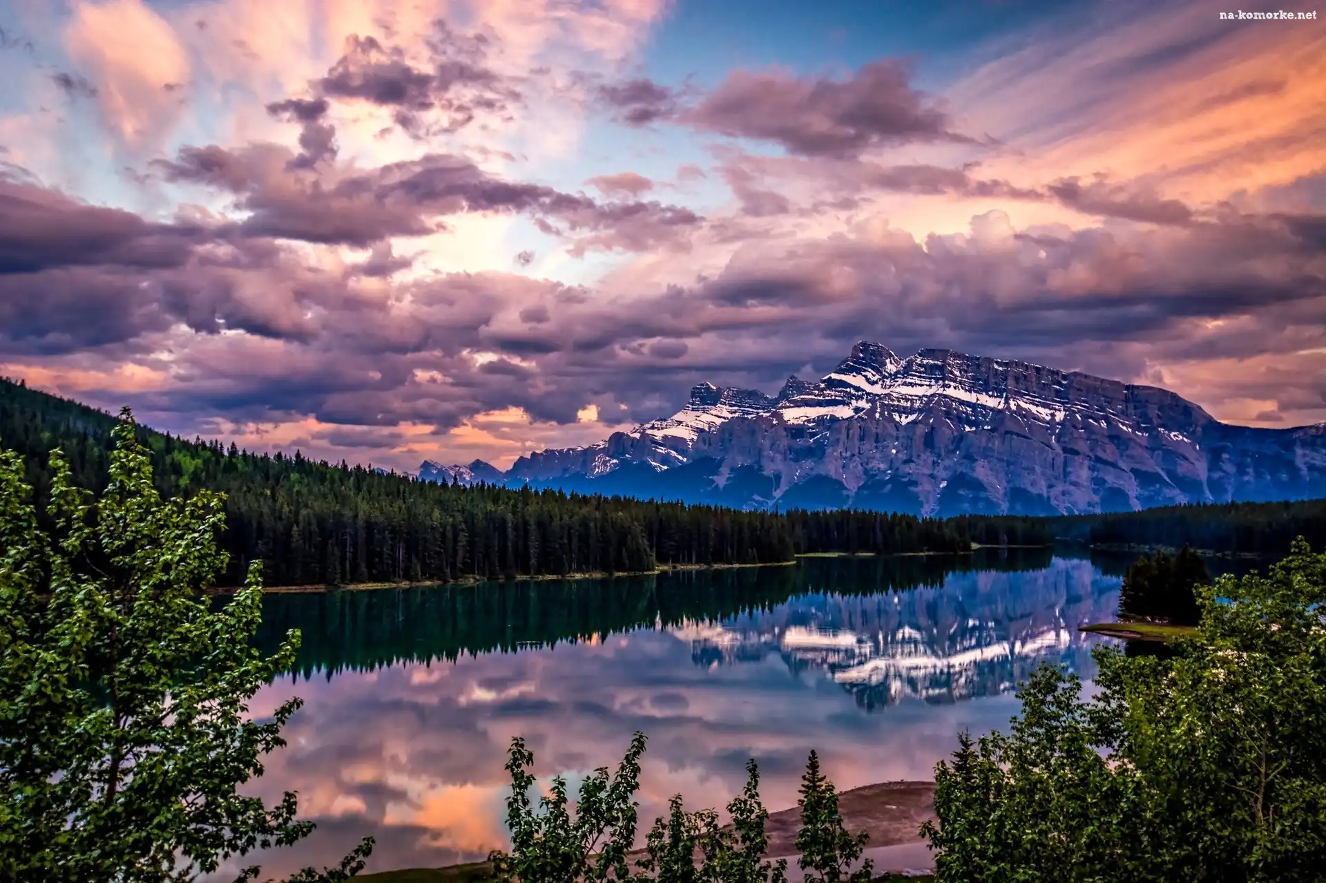 Góry, Chmury, Jezioro, Lasy na Komórkę