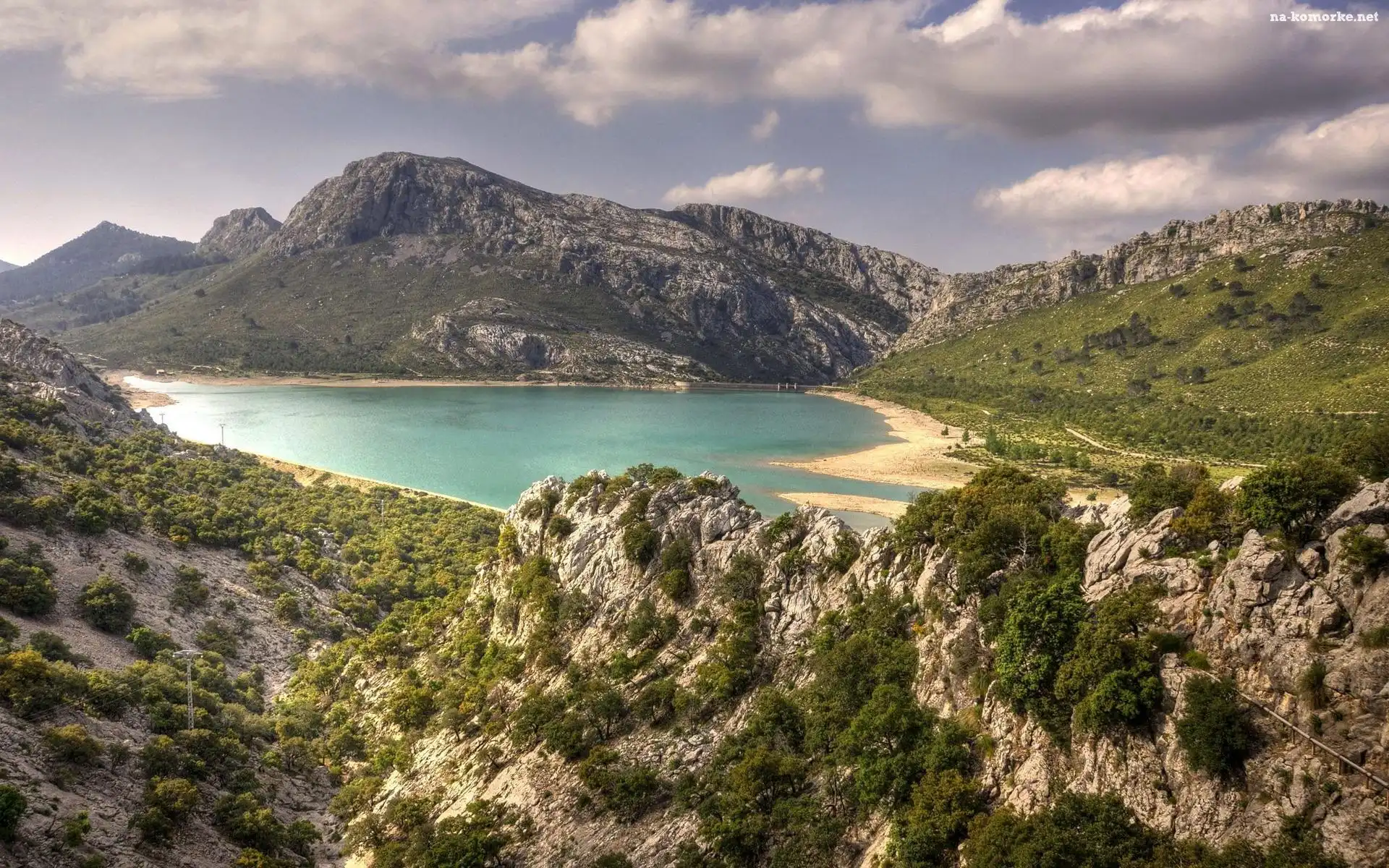 Góry, Chmury, Jezioro, Roślinność na Komórkę