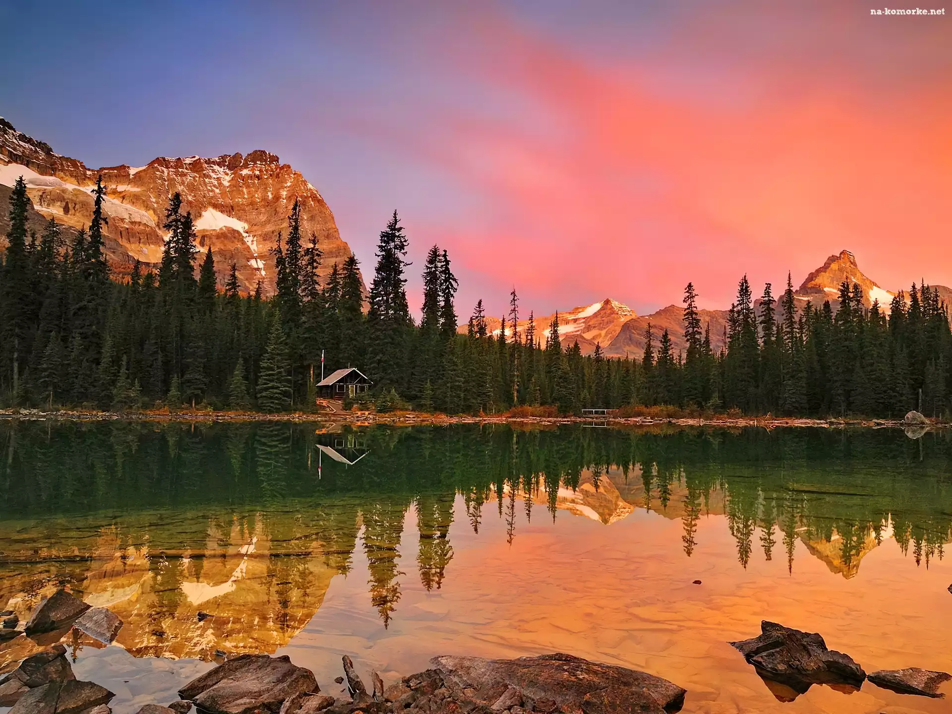 Góry, Domek, Jezioro, Drzewa na Komórkę