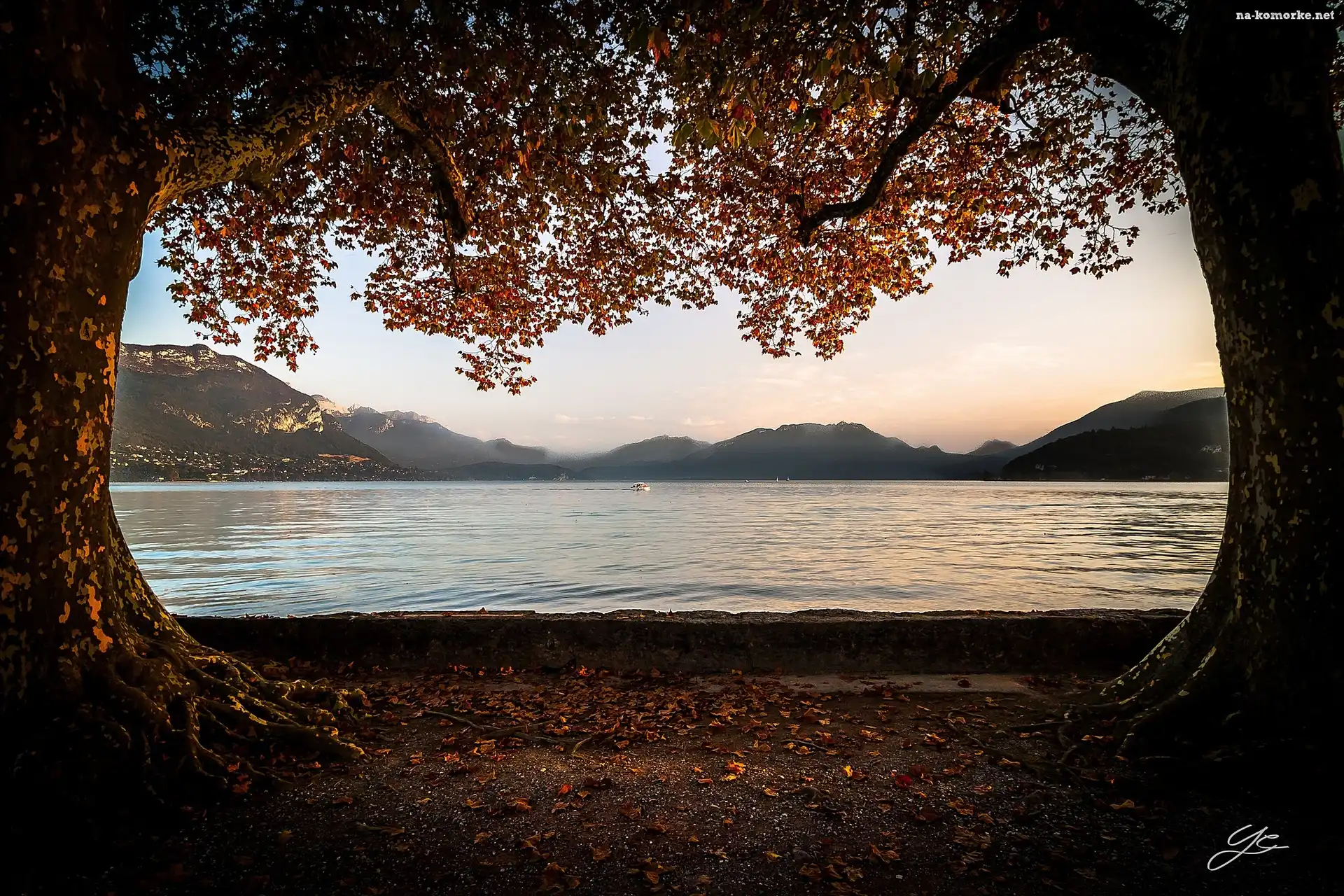 Góry, Jesień, Jezioro, Drzewa na Komórkę