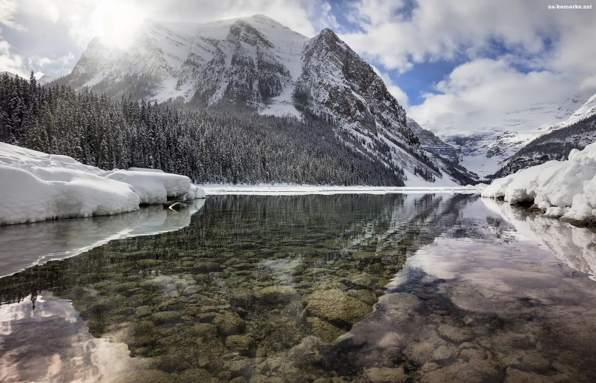 Zima, Park Narodowy Banff, Jezioro Lake Louise, Kamienie, Kanada, Góry na Komórkę