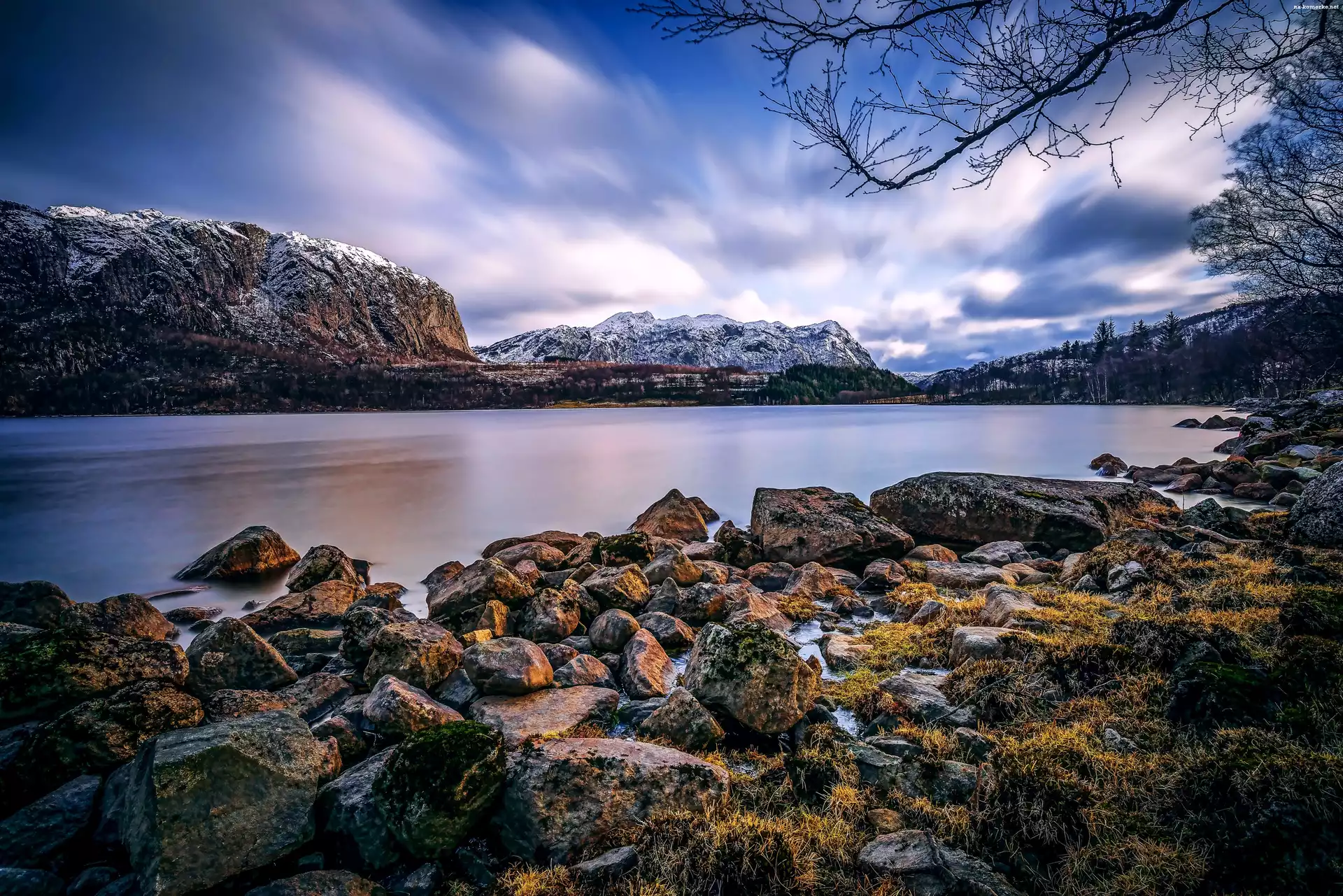 Góry, Norwegia, Jezioro, Kamienie na Komórkę