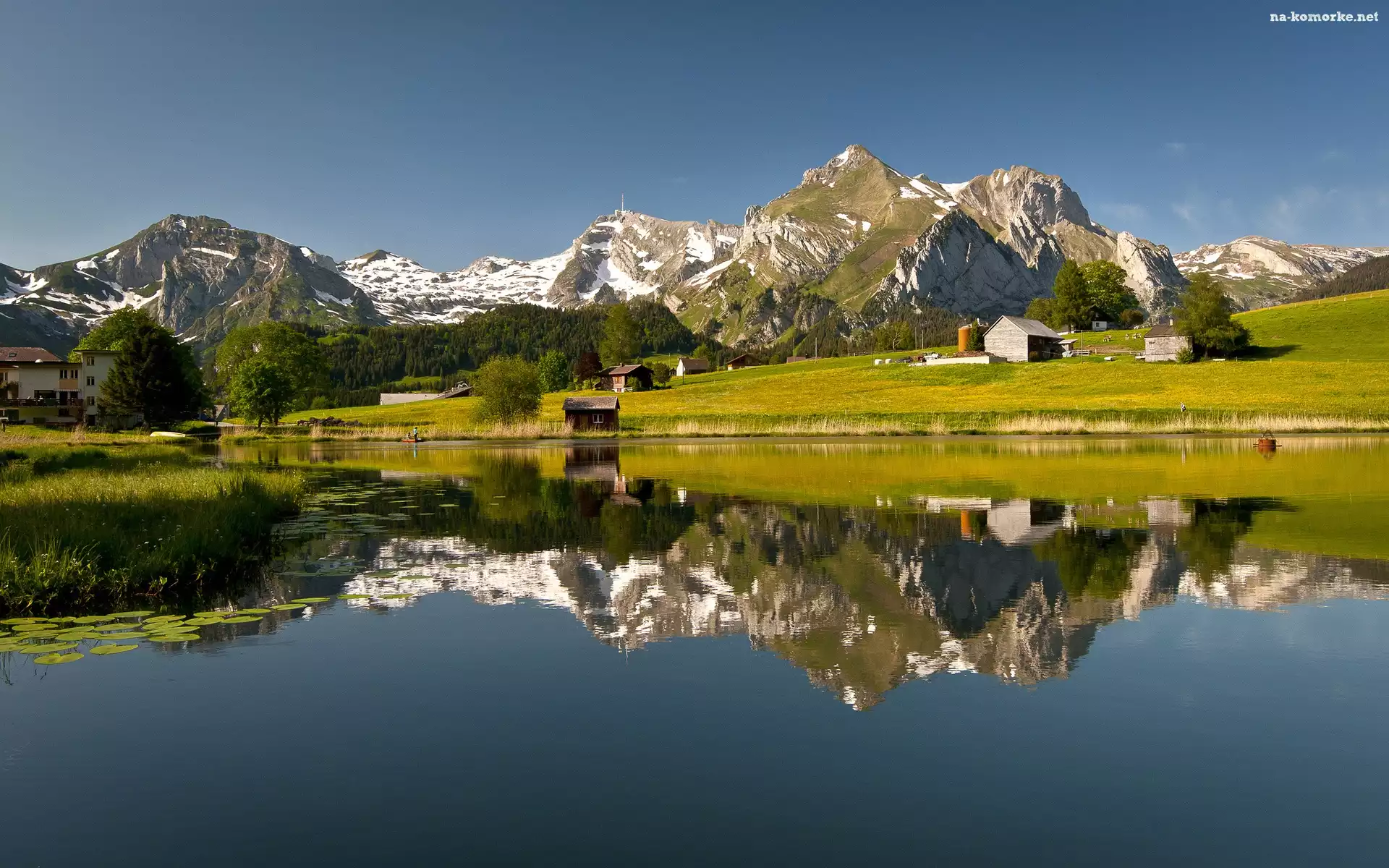 Góry, Odbicie, Jezioro, Domy na Komórkę