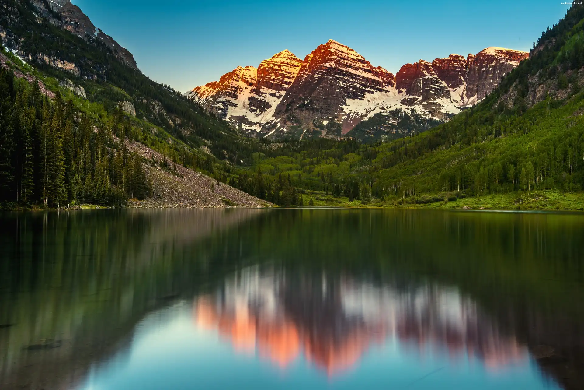 Góry, Odbicie, Jezioro, Drzewa na Komórkę