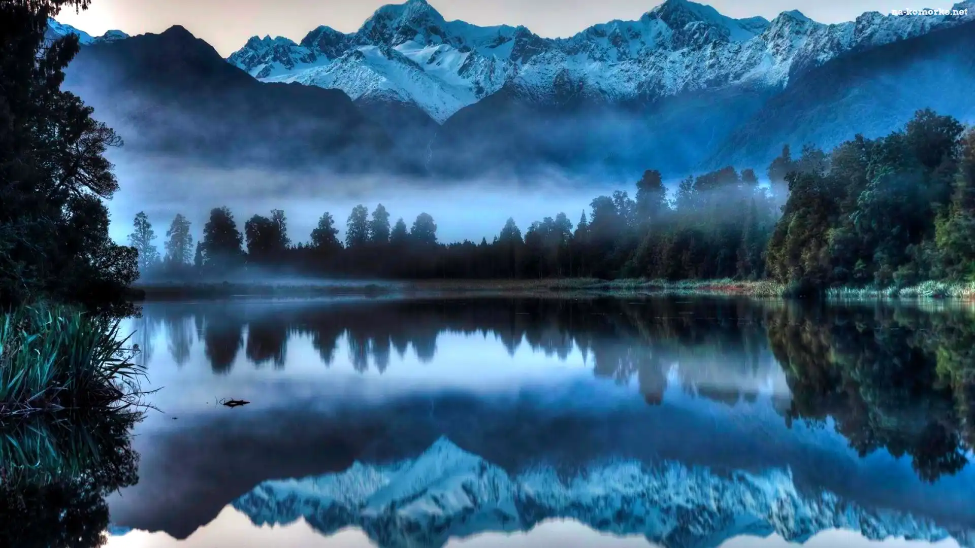 Góry, Odbicie, Jezioro, Drzewa na Komórkę
