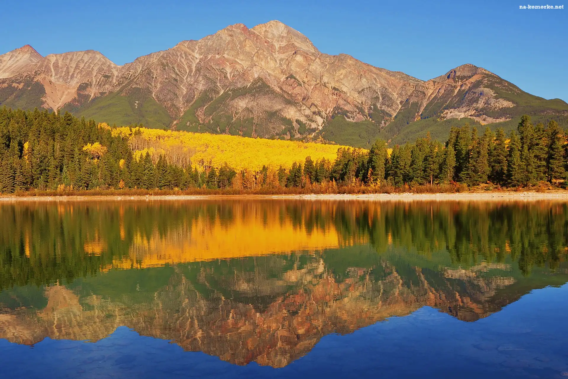 Góry, Odbicie, Jezioro, Lasy na Komórkę
