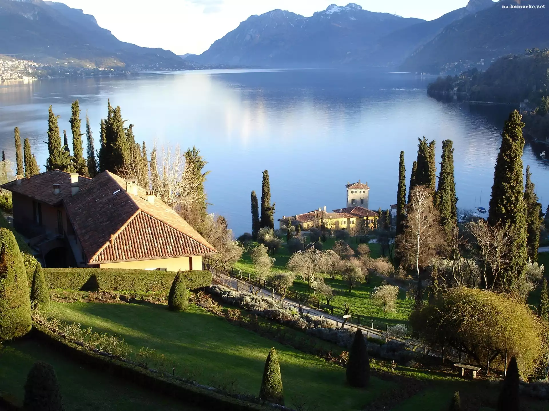 Góry, Ogród, Jezioro, Dom na Komórkę