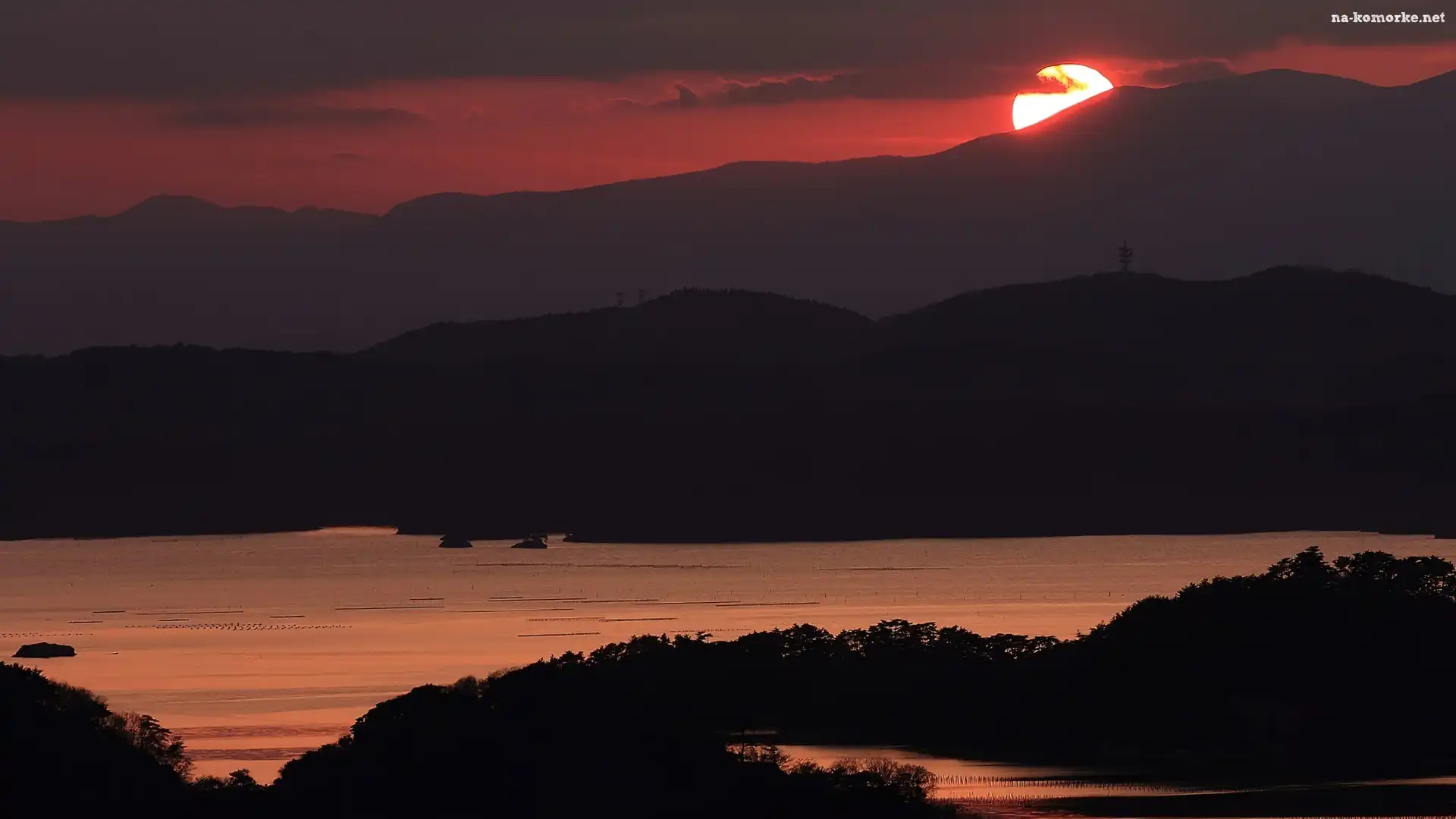 Góry, Słońca, Jezioro, Zachód na Komórkę