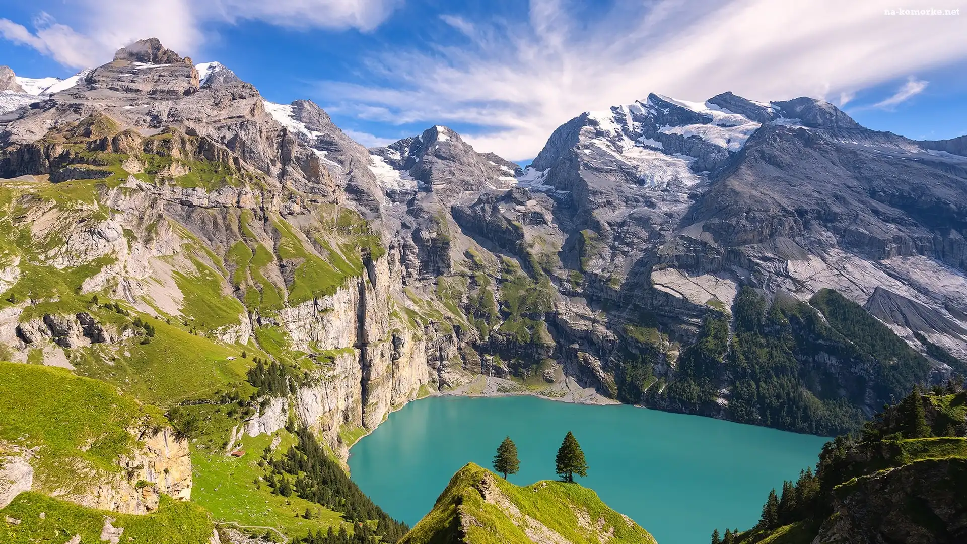Szwajcaria, Drzewa, Góry, Roślinność, Kanton Berno, Alpy Berneńskie, Jezioro, Oeschinen Lake na Komórkę |